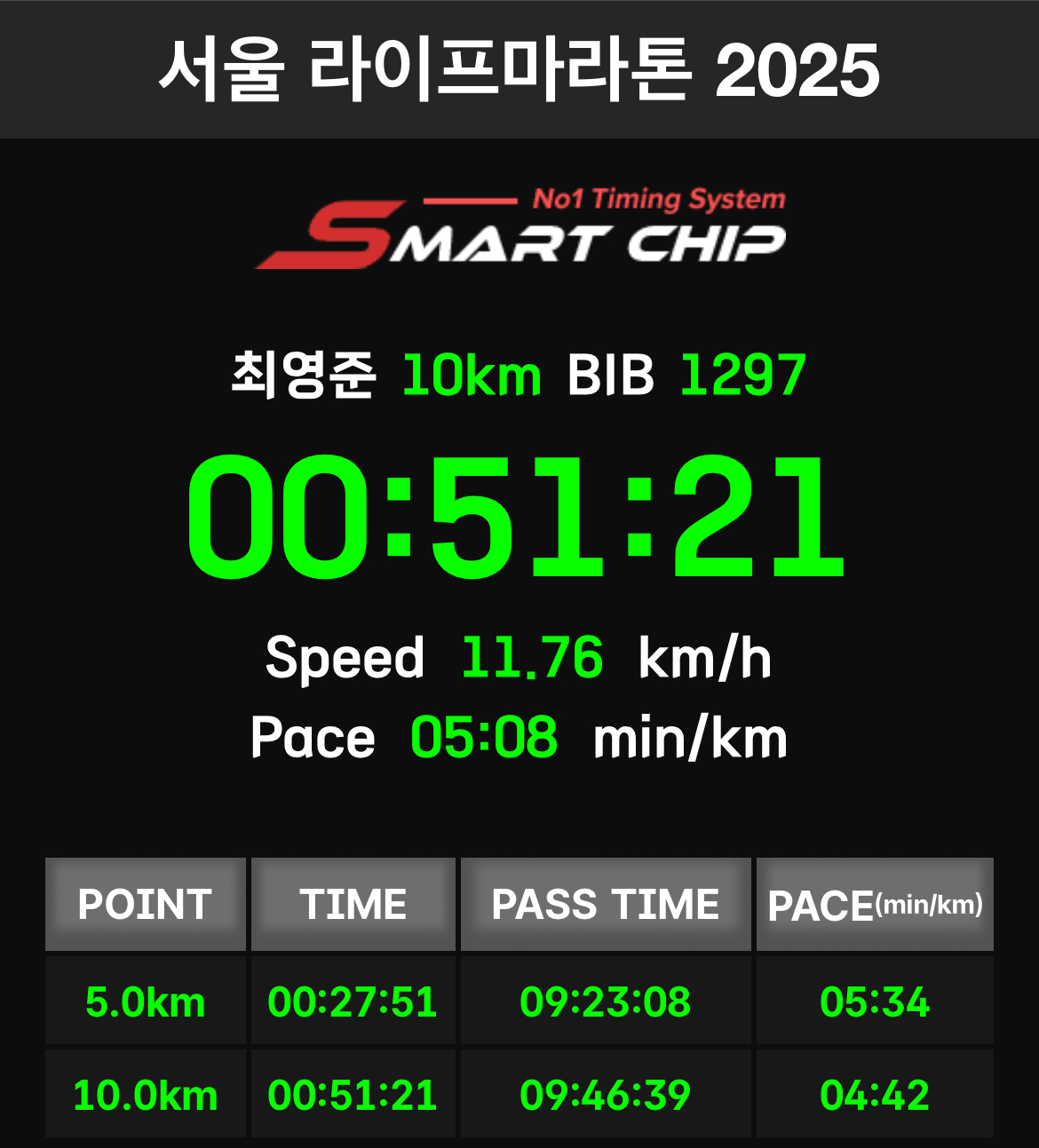 오늘의 51분대 PB는 그 노력의 결과라는 확신을 줬다.
